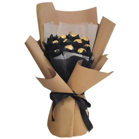 Each bouquet is handcrafted with care and attention to detail, ensuring that every chocolate is perfectly arranged for maximum visual impact. Whether you're treating yourself or sharing with someone special, our Ferrero Rocher chocolate bouquet is an indulgent and unforgettable experience. So go ahead and indulge in the ultimate chocolate pleasure with our one dozen Ferrero Rocher chocolate bouquet.