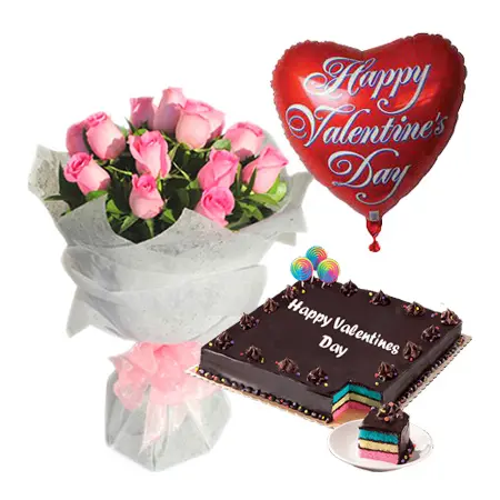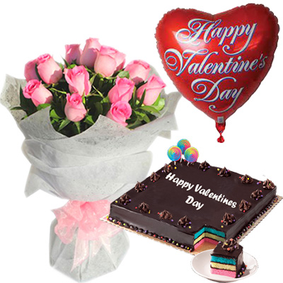 This gift hamper is perfect one to make your beloved happy and sure to make him/her smile. It includes 12 fresh Pink roses combined with a Valentine's Day mylar balloon and Rainbow Dedication Cake by Red Ribbon.