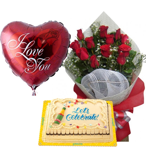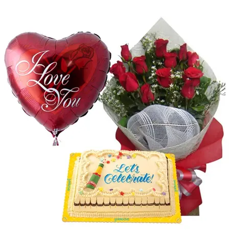 12 Red Roses Bouquet Marble Chiffon Cake By Goldilocks I love You Mylar Balloon. (Balloon design may vary)