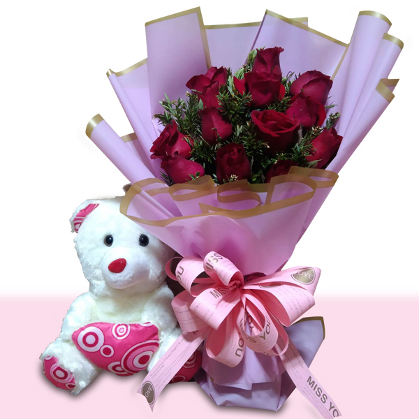 Description: Introducing our exquisite product - a stunning combination of 12pcs red roses and a small size white color teddy bear! Perfect for any occasion, this beautiful bouquet of roses is a classic symbol of love and admiration. Each rose is carefully selected for its vibrant red color and exquisite fragrance, ensuring that your loved one will be enchanted by its beauty.