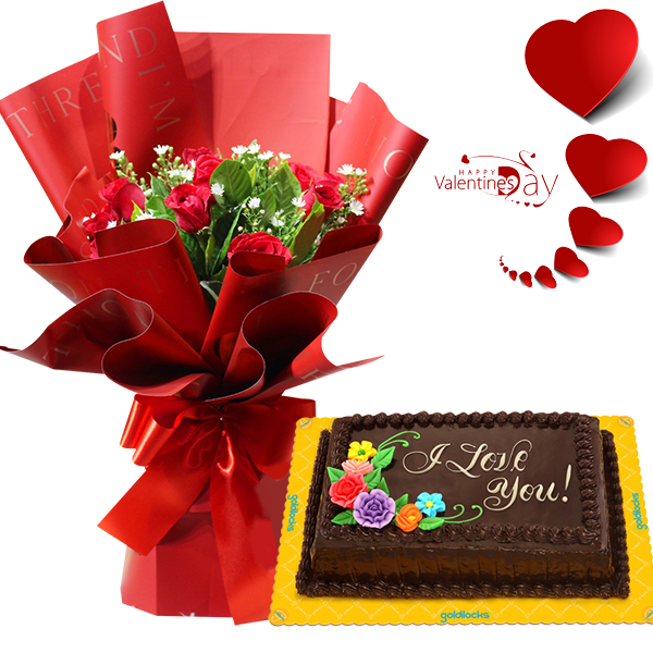 Description: Indulge in romance with our 12pcs Red Rose with Chocolate Chiffon Cake by Goldilocks. Moist chocolate chiffon cake layers filled with rich chocolate, paired with 12 stunning red roses, perfect for any occasion. Handcrafted to perfection, it's a delightful treat for your loved ones.