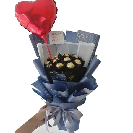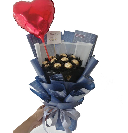 8 pcs Ferrero Rocher Chocolates in a bouquet with Heart Shaped Balloon.