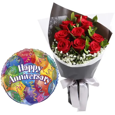 - Birthday gift: The 8 pcs red roses in a bouquet with a happy anniversary balloon is a great way to show your loved one how much you care.