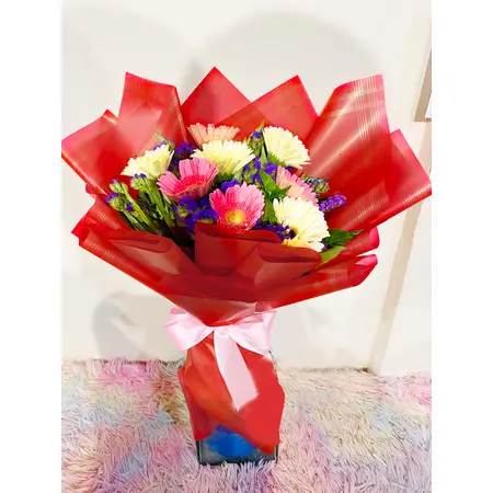 8pcs Pink and White Gerbera Bouquet