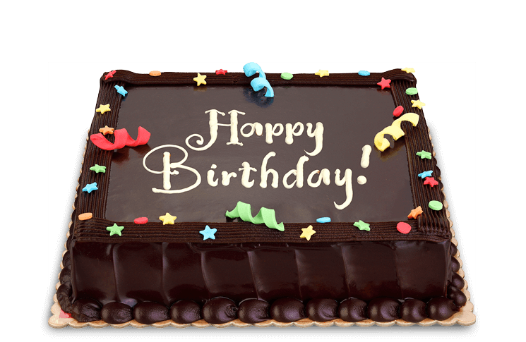 Rich chocolate cake with fudgy chocolate icing and filling and topped with colorful sugar confetti, dots and stars. It can be personalized your own special message.