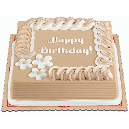 Layers of delightful melt-in-your-mouth fluffy vanilla chiffon, filled and covered with decadent caramel cream. It can be personalized with your own special message.