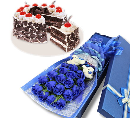 Then send them this stunning bouquet of 24 blue roses with a delicious black forest cake. Your thoughtfulness will blow them away and your gesture will put a smile on their face that lasts for days.