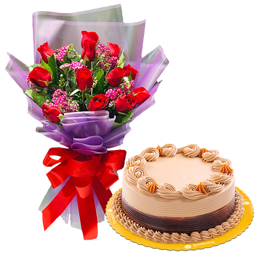 12pcs ROSE Bouquet with COFFEE CARAMEL CAKE