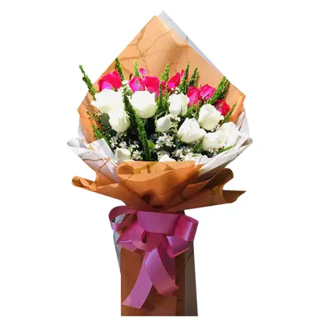 Description: Each color represents a different meaning, and today we have for you 12pcs white and 12pcs pink roses representing peace and friendship sitting gracefully in a color glass vase with a rope on the side. The styling is incredible and the roses are beyond appreciable. Fill your life with this scent and beauty too.