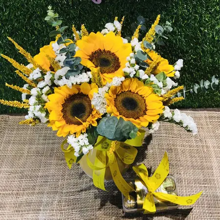 Look no further! Our 5pcs Sunflower in Vase with 6pcs Ferrero Rocher is the perfect gift for that special someone.
