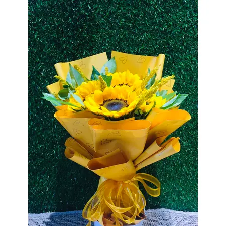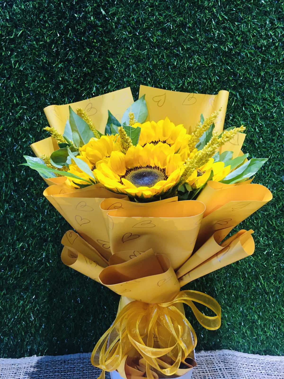 This product includes 3 pieces of sunflower in a bouquet. Sunflowers are known for their cheerfulness and this is the perfect way to send some happiness to your loved ones.